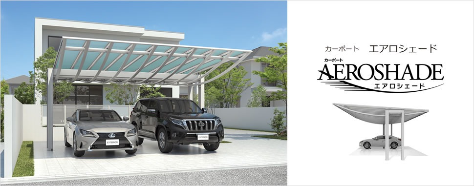「叶えたいのは、もうひとつリビングを持つという贅沢」というコンセプトのカーポートです。屋根を下から支えるのではなく上から吊りあげる仕組みになっています。室内の天井のような形状になっており、部屋の中にいるような安心感を抱けるのが特徴です。