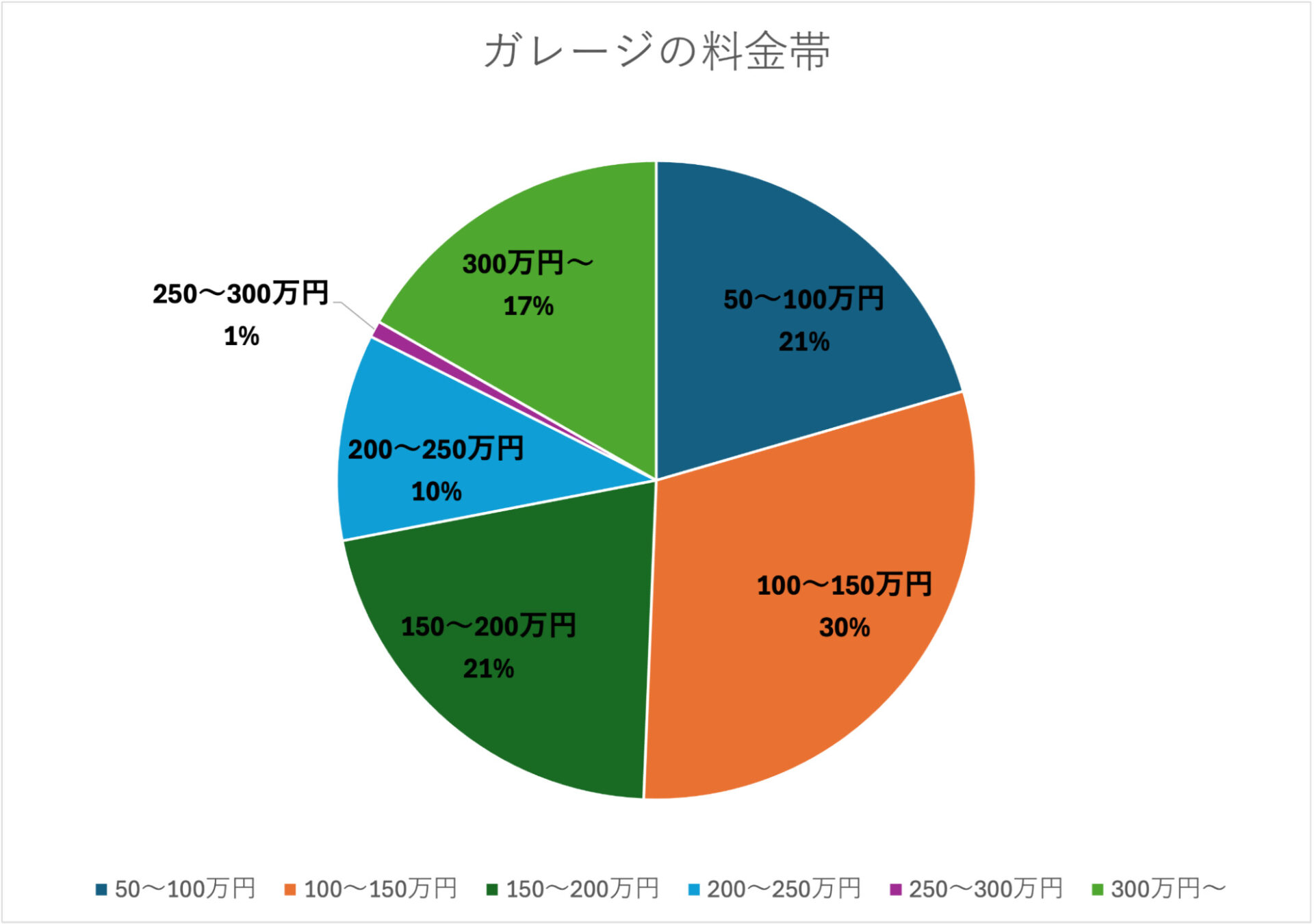 ガレージは工事費込みで、おおよそ100〜250万円程度になることが多いと言えます。