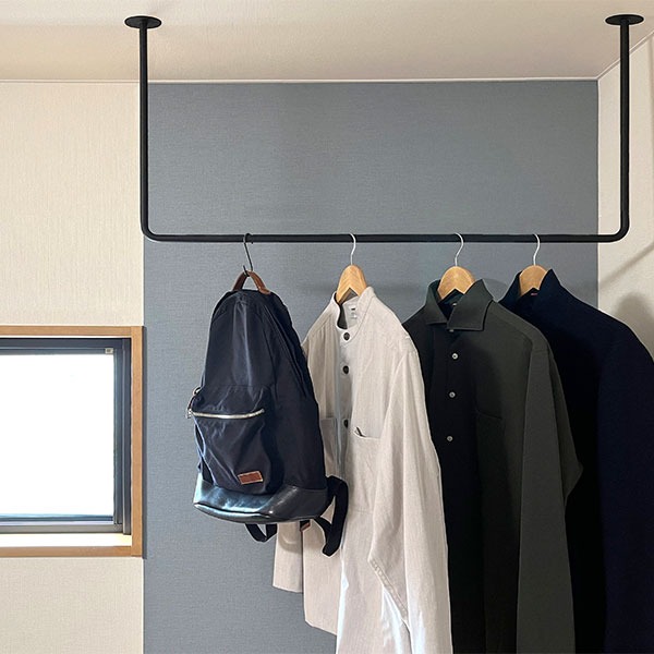 天井取付式の物干しなら、カツデンのHosubaがおすすめです。Hosubaはスチールの物干しで、シンプルでどんなランドリールームにも馴染んでくれるのが特徴です。溶接・曲げで一体物で製作されており、無駄なパーツを削ぎ落としています。