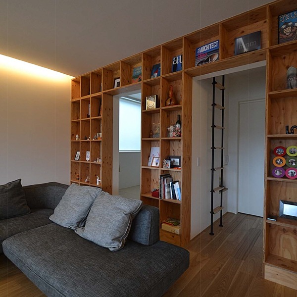 施工事例:本好きのための大きな本棚に合う「はしご」