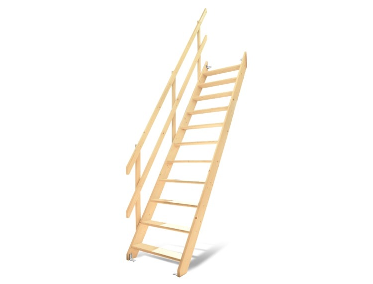 写真:北欧産【ワイドステップ】 木製ロフト階段 片側手すり仕様