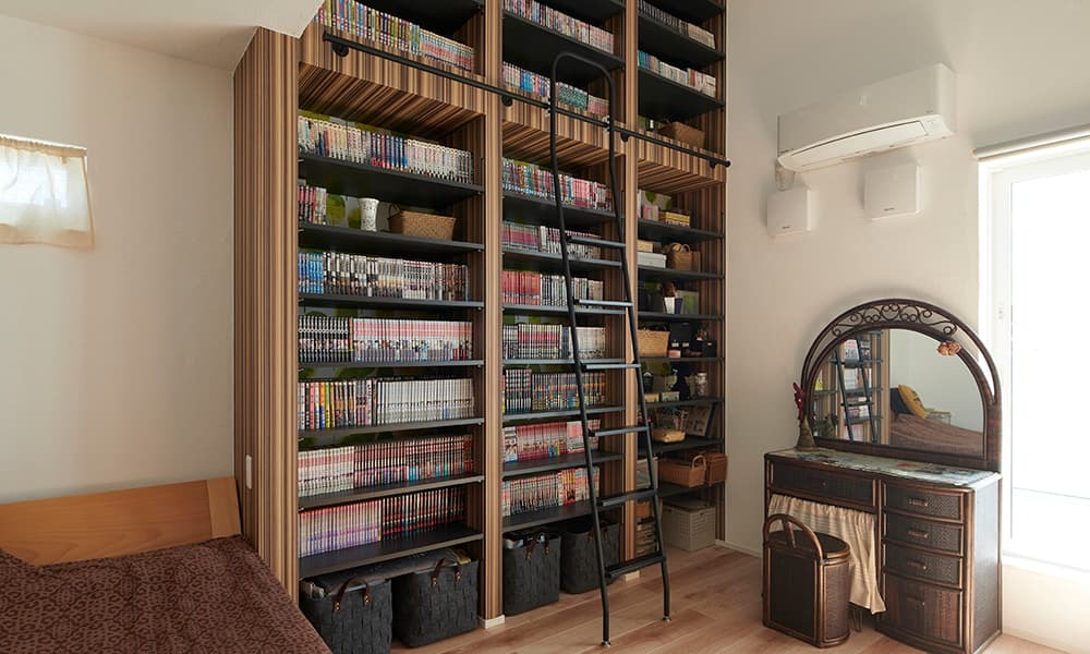 施工事例:本好きのための大きな本棚に合う「はしご」