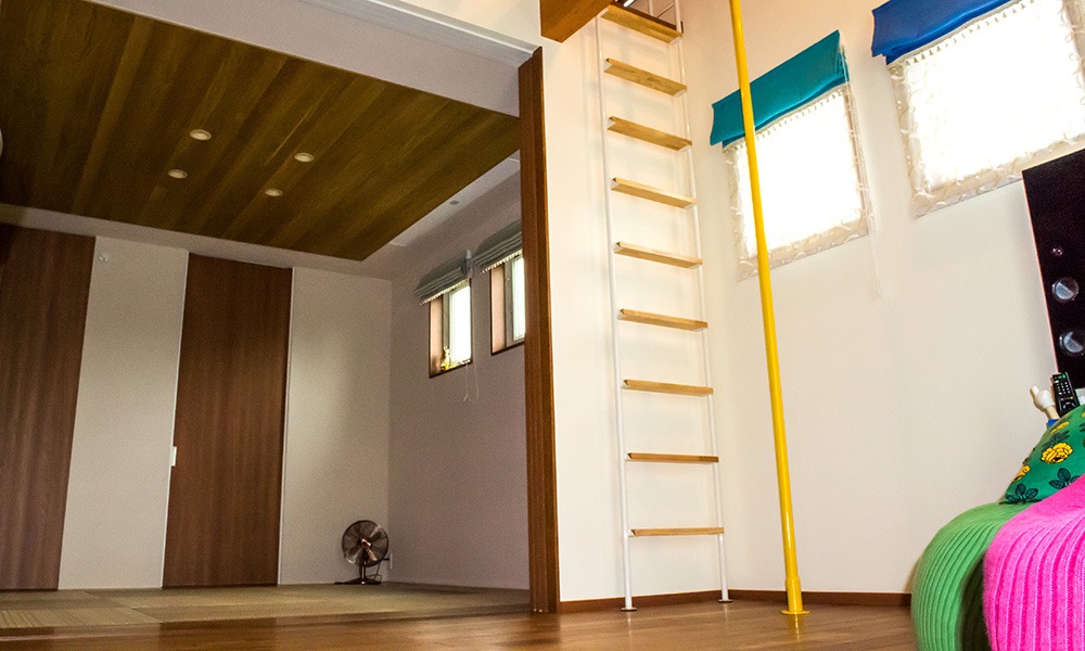 施工事例:ロフト用ハシゴとのぼり棒の組合せ