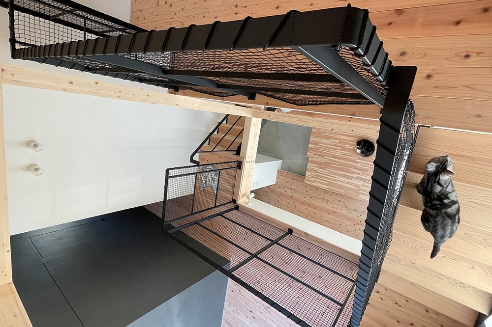また、手すりの高さも調整しています。1.1mだと猫が飛び越えてしまうということで、標準より少し高い1.3mにしています。