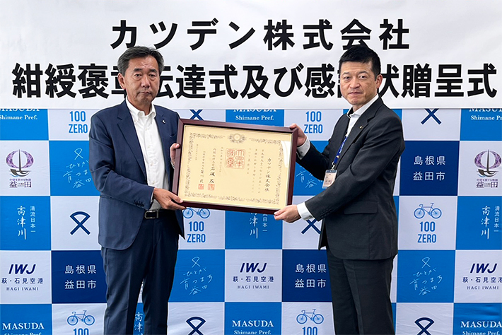 毎年11月3日の文化の日に、益田市政(自治、衛生保健、教育、消防)の振興発展に貢献したとする企業や人物を表彰する「益田市市政功労者表彰式典」において表彰されました。