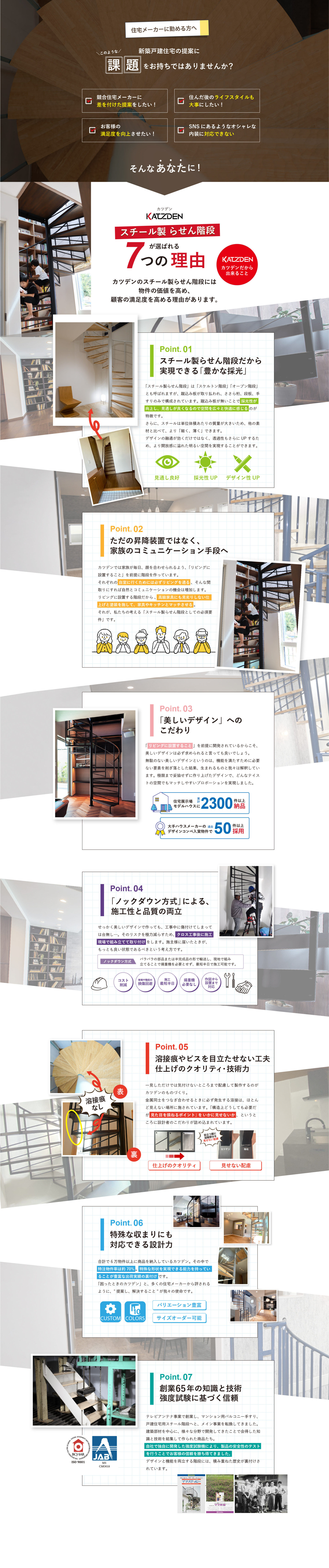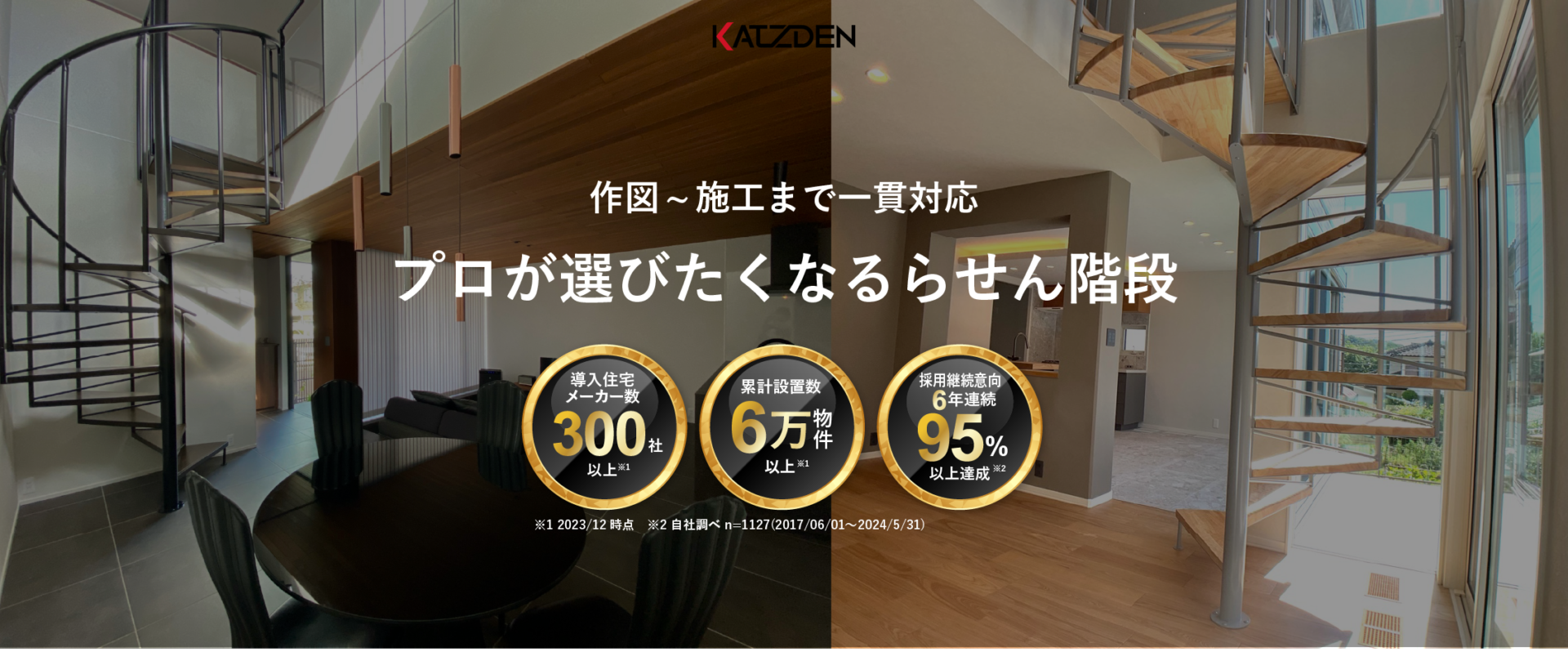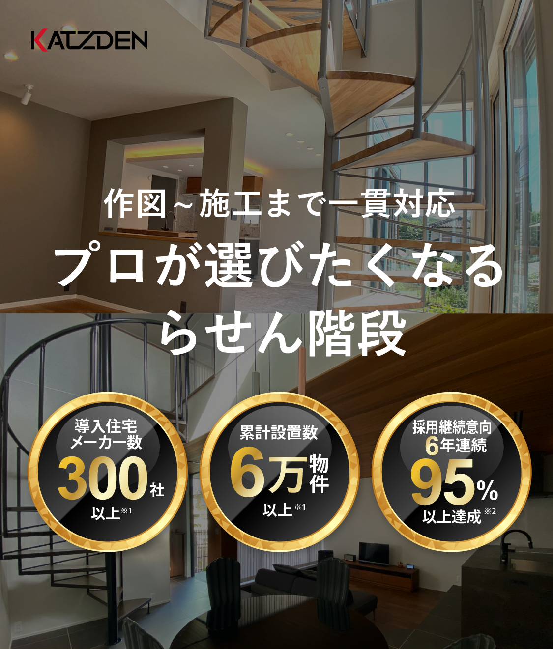 ※自社調べ。カツデンの顧客のうち、ハウスメーカー上位3社の戸建実績と、弊社スチール階段の納入数から算出。
