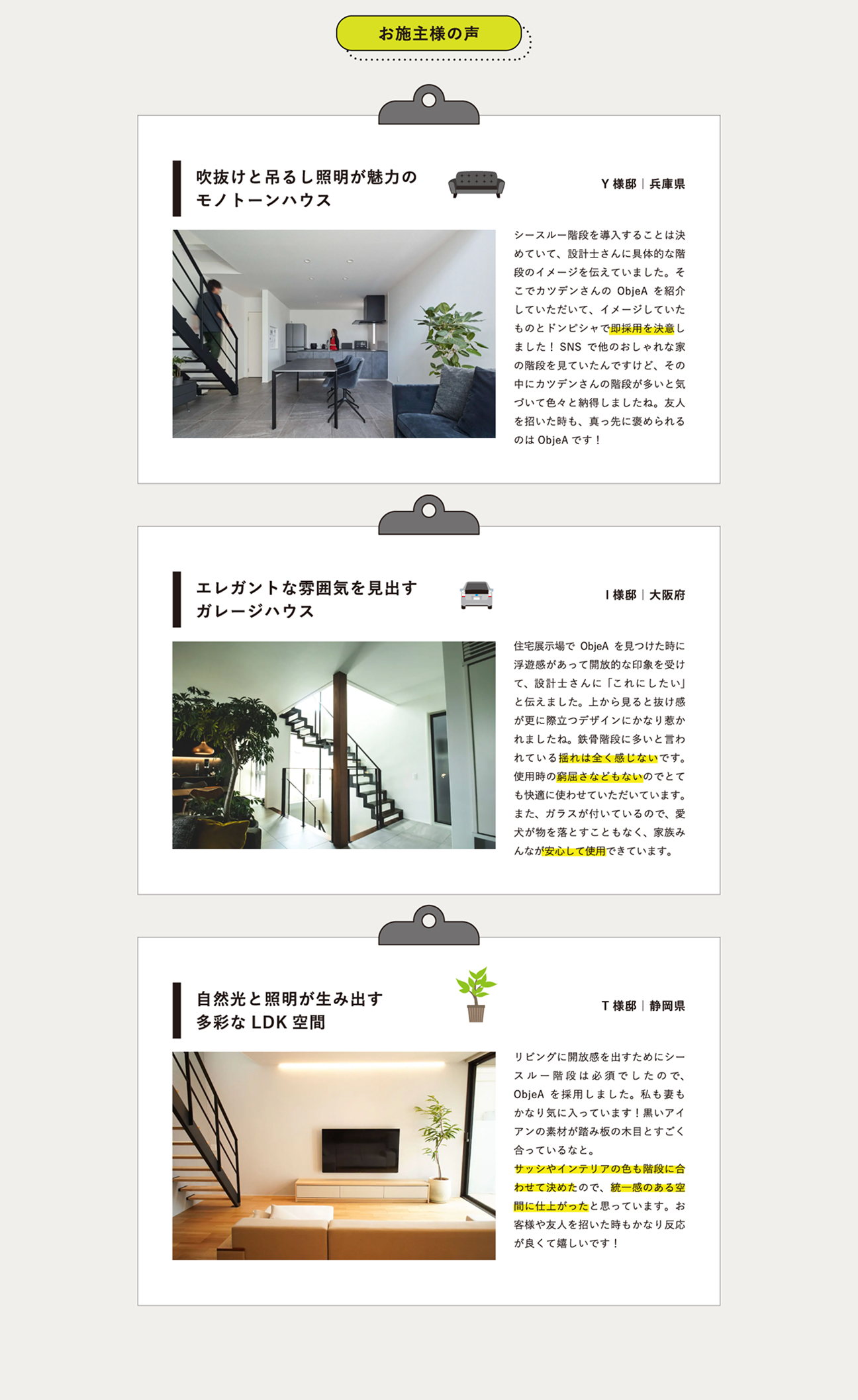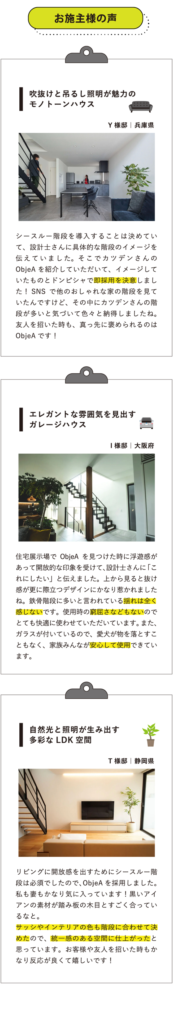 カツデンは、とにかくデザインと使いやすさを追求していて、人気の階段でも更なる「カッコ良さ」を求めて改良をしてますね。そんな技術者が揃っている会社なので、安心して使っています。