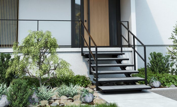 スチールを用いたシャープな意匠は、モダン住宅との相性も良く、エクステリア空間のデザイン性を高めます。