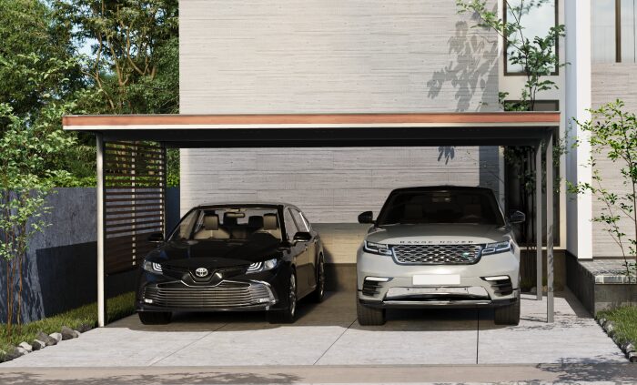 『CARKUREGA(カクレガ)』は、カーポートの手軽さとガレージの快適性を兼ね備えたスチール製カーハウスです。外気の影響を抑える断熱材を搭載し、愛車の保護はもちろん、アウトドアリビングとしても快適に使用できます。