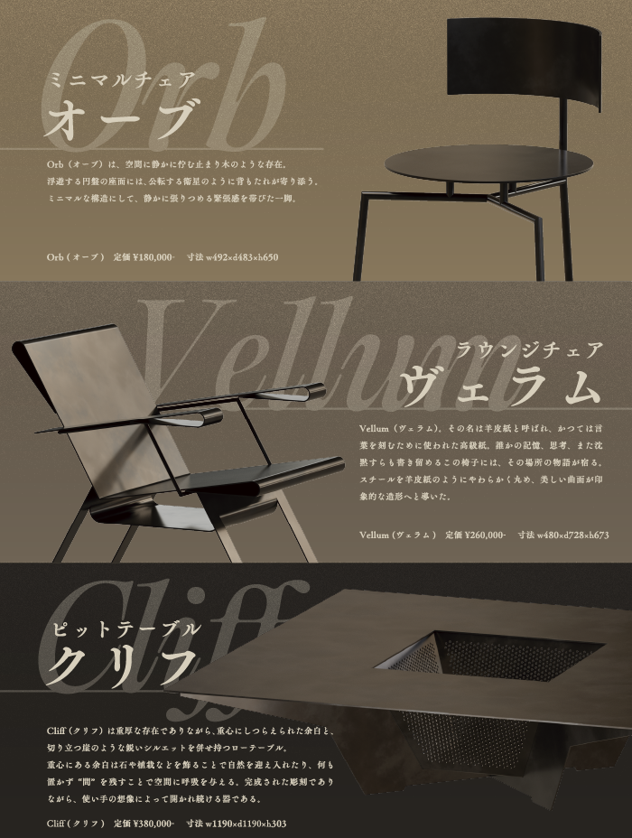 機能や装飾の先にある、本質的な豊かさを空間にもたらすために、誠実にものづくりと向き合ってまいります。