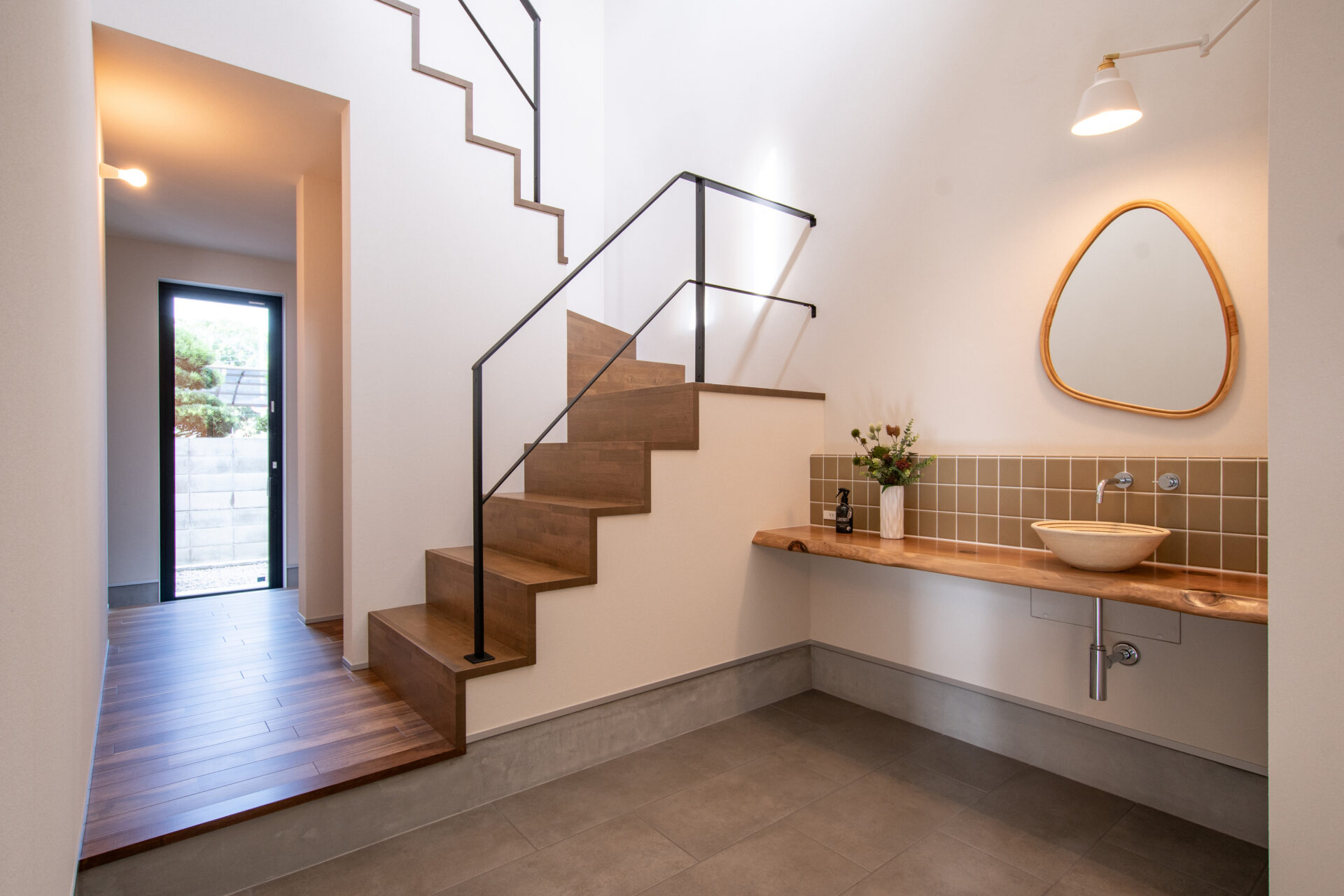 施工事例 No. 8 温かな空間を引き締めるブラックのアイアン手すり | 階段手すり | KATZDEN