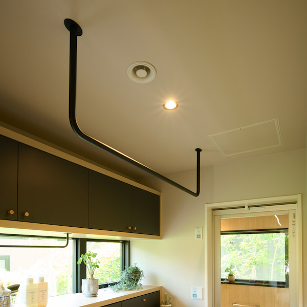 インテリアデザインを損なわず、日常生活に潜むシンプルな物干し。