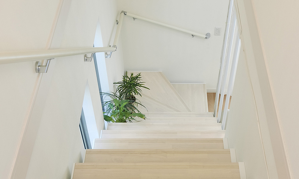 設計時には揺れにくさや安全性などの面に目が行きがちなのですが、囲まれた階段室で機能性とデザイン性の調和を持たせるための提案に工夫をした結果、実際に使っていただいた感触が柔らかいという感想をいただけて安心しています。