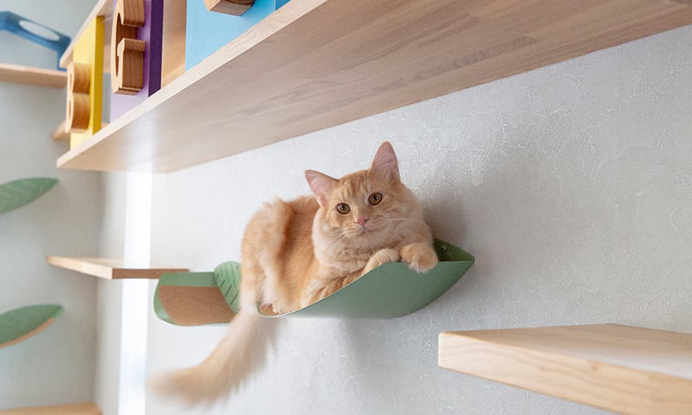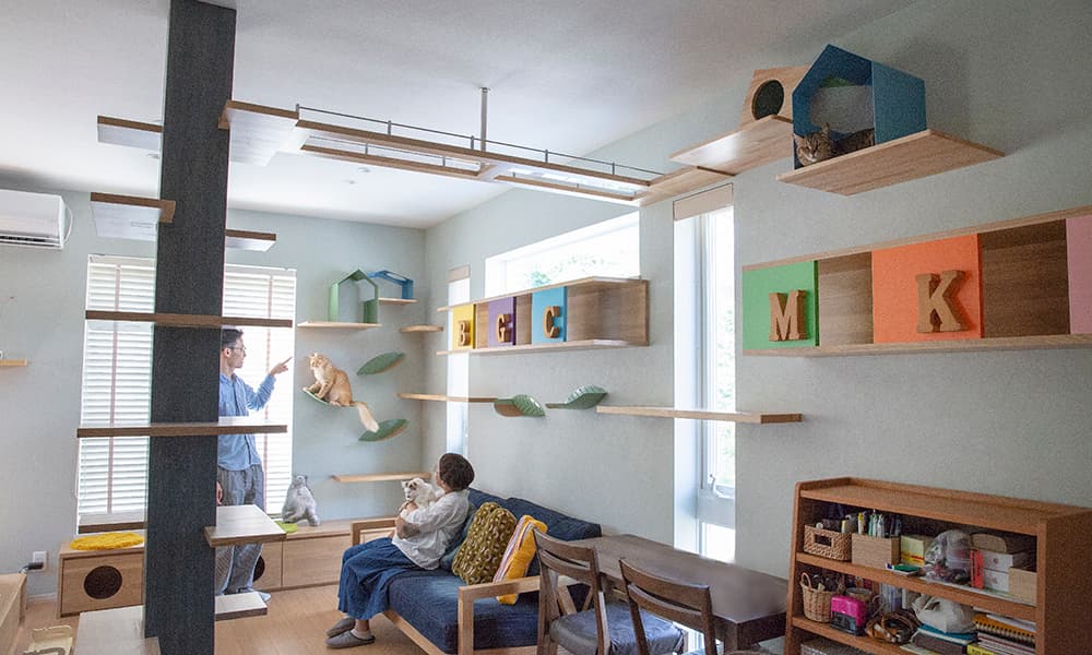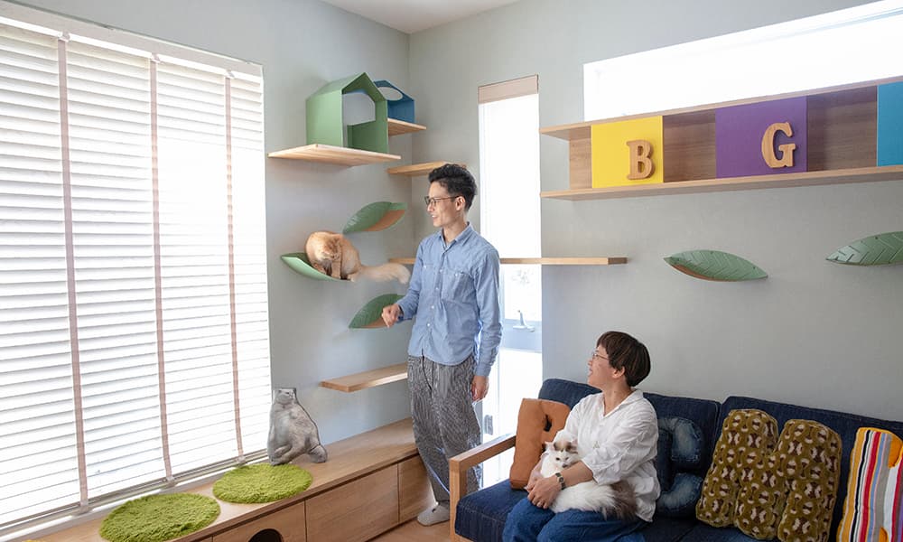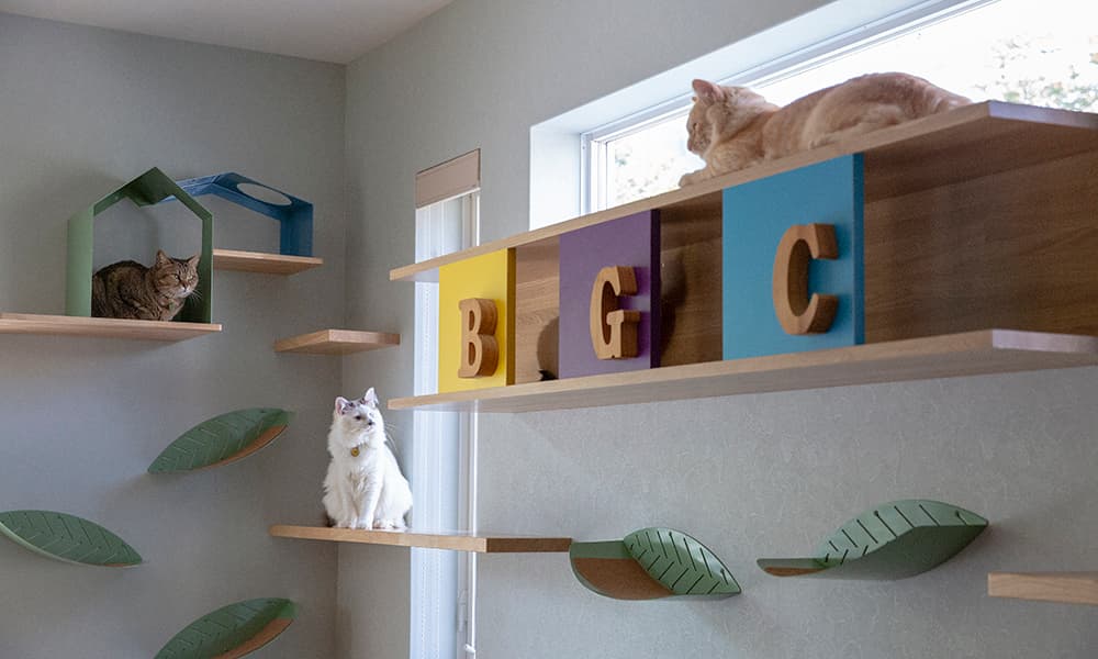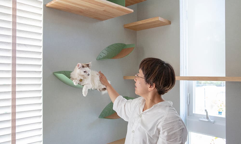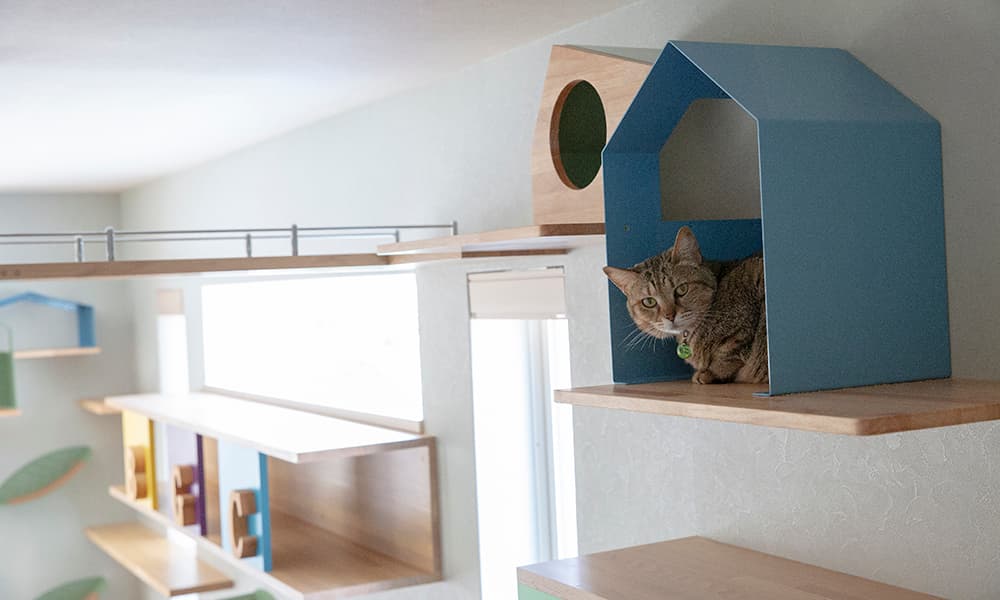 猫にとって遊びやすく、居心地の良い奥行や高さを想定して細かく決めましたね。