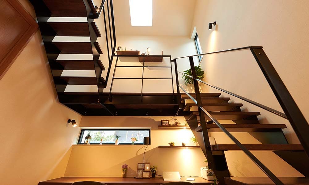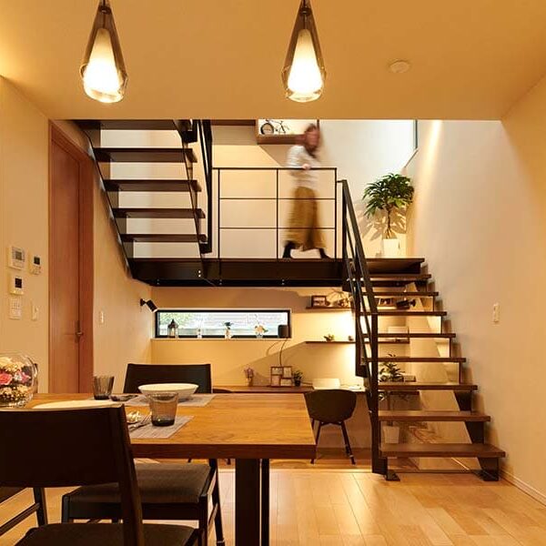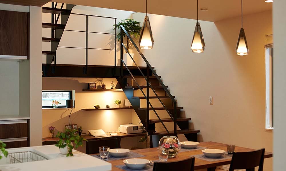 階段下のスペースをご夫婦の仕事用や、お子さまの遊び場用など多目的に使用されていますし、照明やインテリアと相まって、部屋の雰囲気づくりに役立っていると感じました。