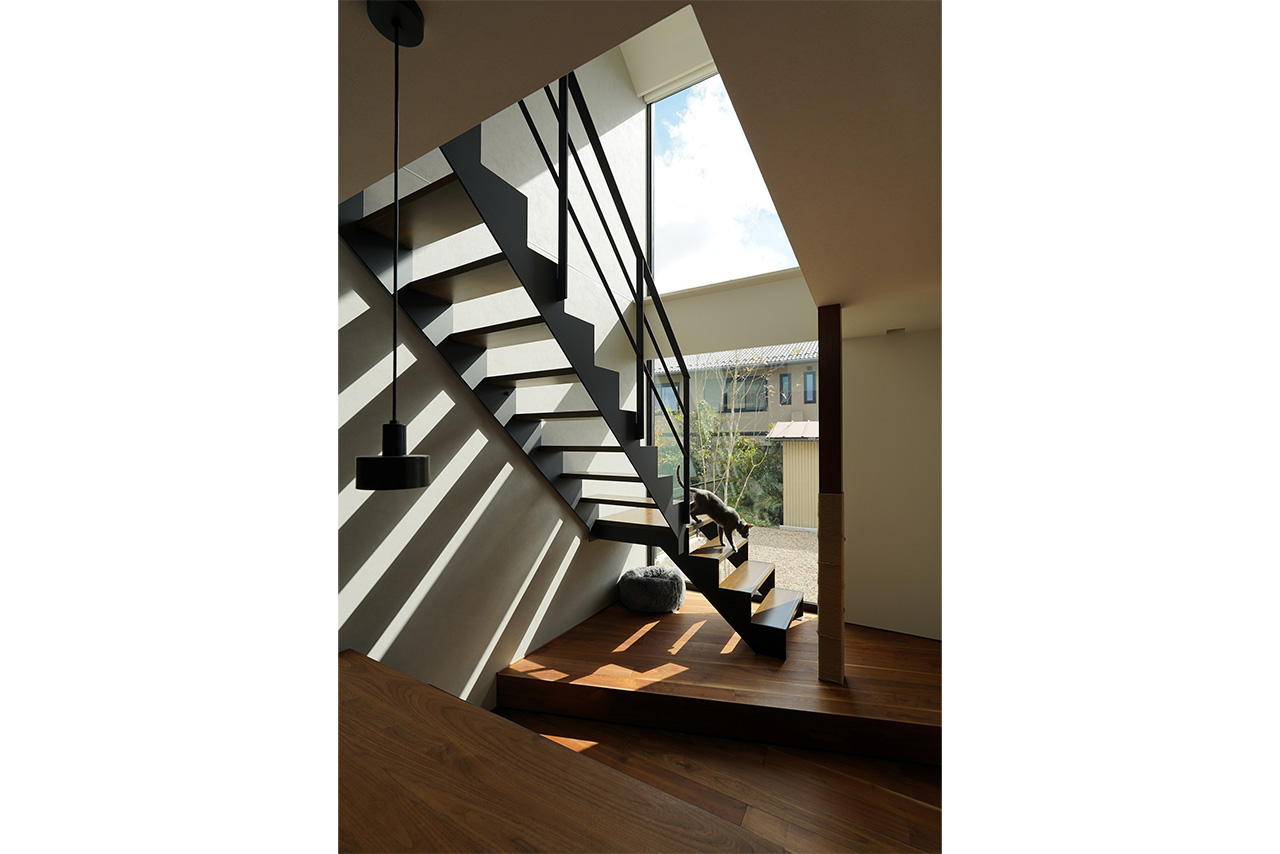 鉄骨階段の線の細さが際立つポイントでもあると思います。