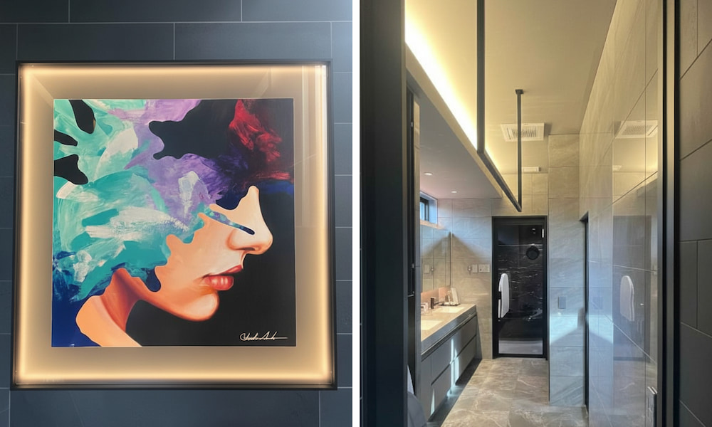 今回、高級感のある家具を多く配置していったので、それらにに負けない空間設計を意識しています。